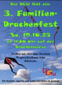 Am Sonntagtag, den 19. Oktober 2025, lädt die Dorfgemeinschaft Wittelsberg ab 11:00 Uhr zum großen Drachenfest für die ganze Familie auf die Drachenwiese nähe Konrad-Lauer-Straße, ab da ausgeschildert, ein. Gemeinsam wollen wir Drachen steigen lassen und einige der schönsten und größten Drachen bestaunen. Wer möchte, kann Tipps zum richtigen Drachensteigen oder lenken erhalten oder einfach den farbenfrohen Himmel genießen. Für das leibliche Wohl ist mit hausgemachtem Kuchen sowie warmen und kalten Getränken bestens gesorgt. Der Eintritt ist frei – also: Drachen einpacken und vorbeikommen!
